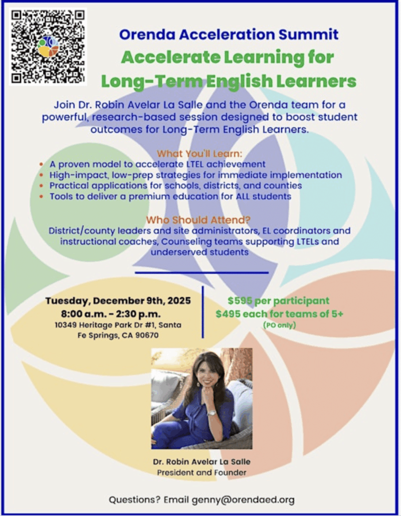 Join Dr. Robin Avelar La Salle and the Orenda Education team for a highly engaging, action-oriented session designed for teacher teams, teacher leaders, instructional coaches, and administrators who support Long-Term English Learners (LTELs). This session is perfect for anyone looking to deepen their instructional practice and for those who were unable to attend Part One.